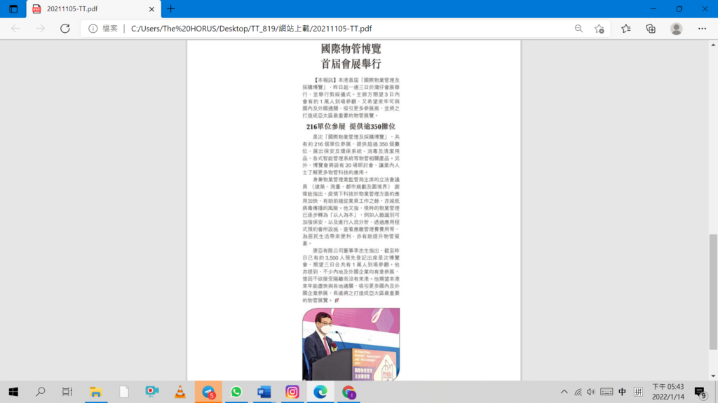 是次「國際物業管理及採購博覽」,共有約216個單位參展,提供超過350個攤位,展出保安及環保系統、消毒及清潔用品、各式智能管理系統等物管相關產品。另外,博覽會將設有20場研討會,讓業內人士了解更多物管科技的應用。