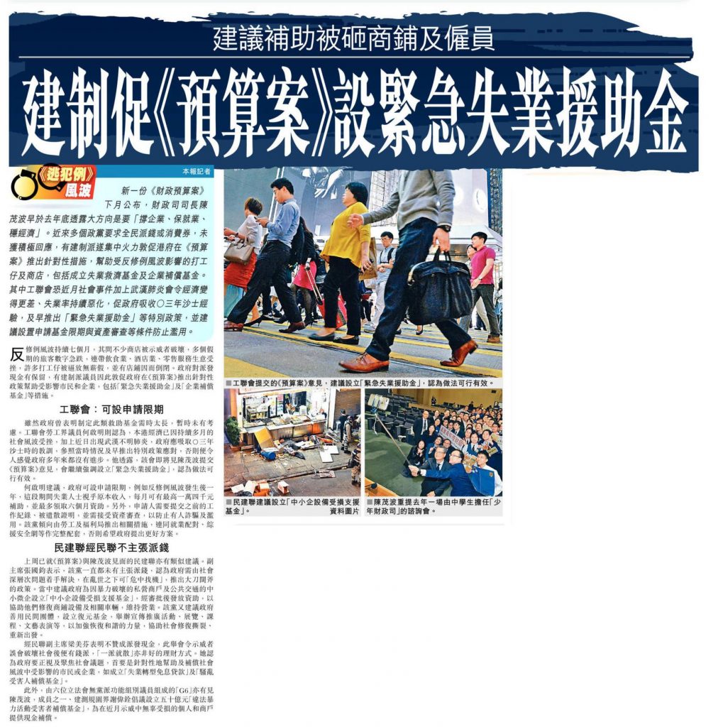 及商店,包括成立失業救濟基金及企業補償基金。其中工聯會恐近月社會事件加上武漢肺炎會令經濟變得更差、失業率持續惡化