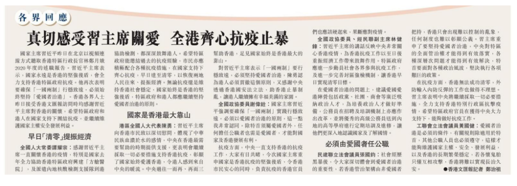 真切感受習主席關愛 全港齊心抗疫止暴