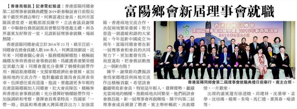 [:zh]【香港商報訊】記者霄虹報道:香港富陽同鄉會第二屆理事會就職典禮暨2019 新春聯誼會日前假尖東千禧世 […]