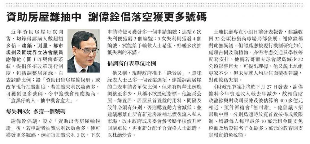 [:zh]資助房屋難抽中 謝偉銓倡落空獲更多號碼[:] Read More »